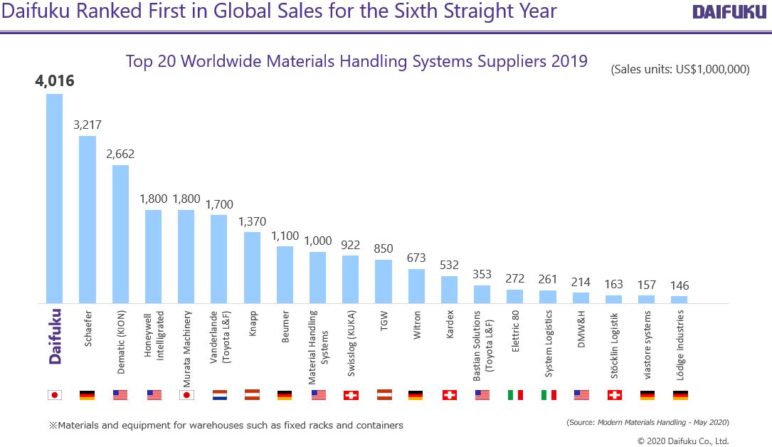 - 【DAIFUKU】Ranked the worlds No.1 for the sixth straight year in the “Top 20 Materials Handling Systems Suppliers 2020”